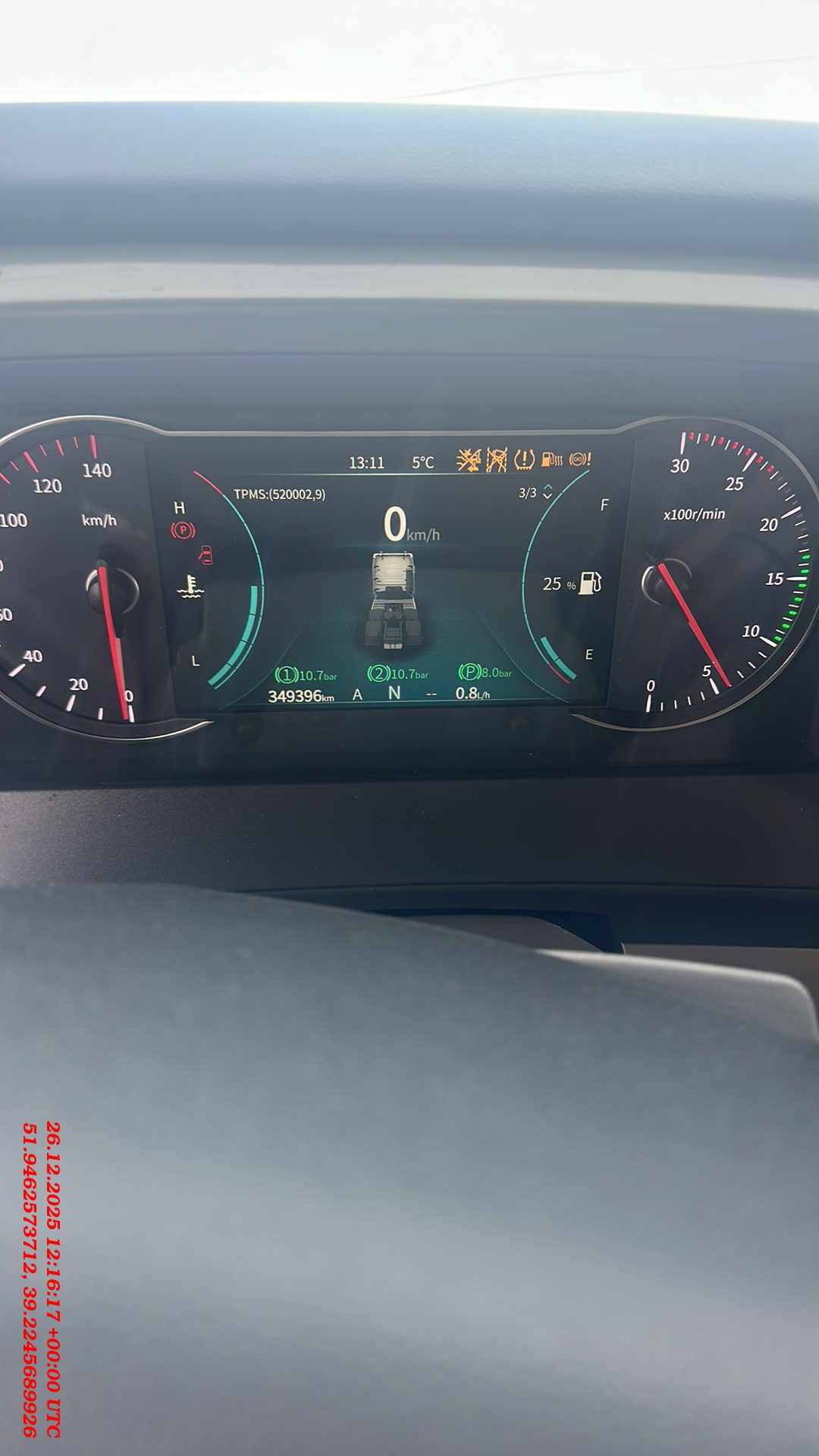 Тормозная система Полная пневматическая тормозная система, разделенный пневматический контур, стояночный пружинный тормоз, действующий на задние оси, дисковый тормоз, моторный тормоз, ASR, ESC, TPMS, LDWS+FCWS, гидравлический замедлитель
