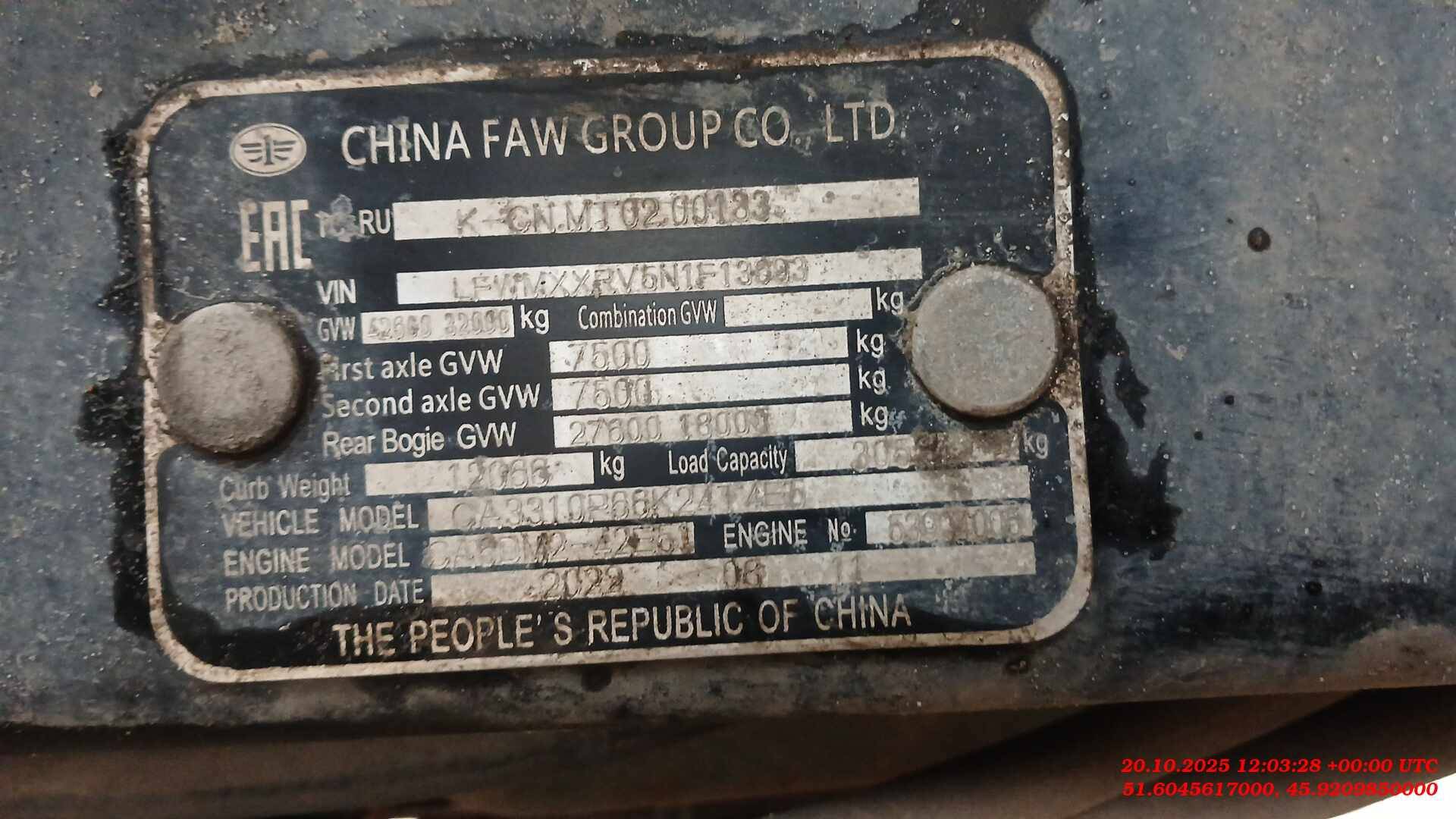 FAW CA3310P66K2T1E5 8х4, 49 280 км, 2023 года в лизинг