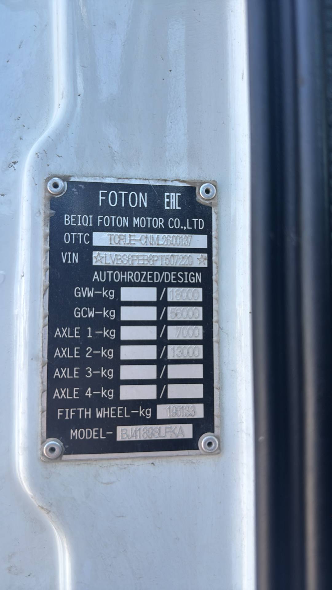 • Модель: Foton AUMAN EST A 1844 AMT (4189SLFKA) – седельный тягач, 4×2