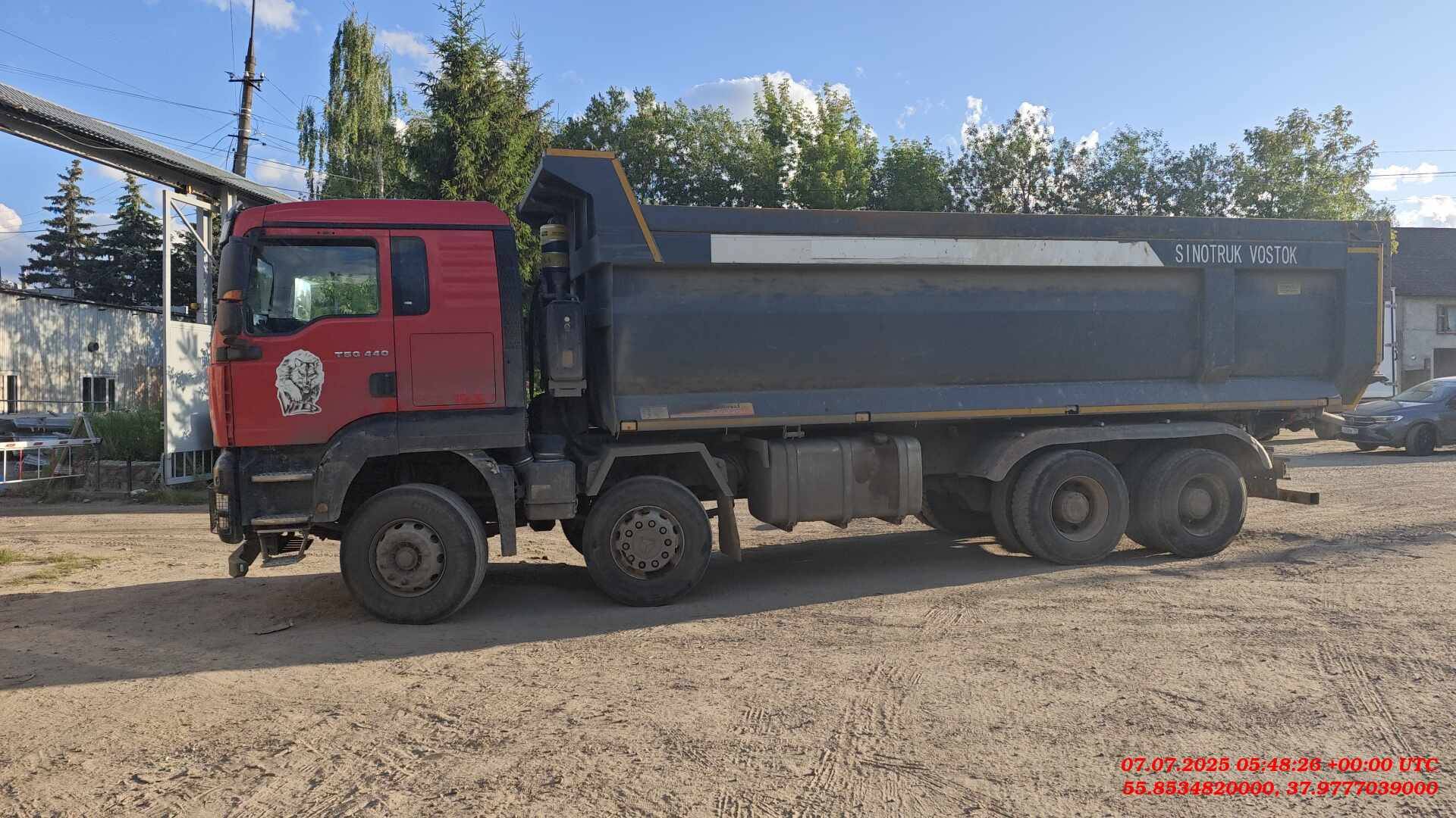 Основные характеристики HOWO ZZ3317V386GE1 8х4 Модель: HOWO T5G ZZ3317V386GE1 Колесная формула: 8x4 Грузоподъемность: 40 000 кг Снаряженная масса: 18 520–19 140 кг Полная масса: 40 000 кг Двигатель: MC11.44-50 (Евро-5), 440 л.с. Объем двигателя: 12 419 см³ Тип кузова: U-образный (или прямой в зависимости от модификации), объем 35 м³ Колесная база: \(1950+3825+1350\) мм Шины: 315/80R22.5 Коробка передач: HW25712XSTC Топливный бак: 600 л Тормозная система: ABS Габаритные размеры (ДхШхВ): \(10910\times 2492\times 3490\) мм (может варьироваться в зависимости от комплектации)