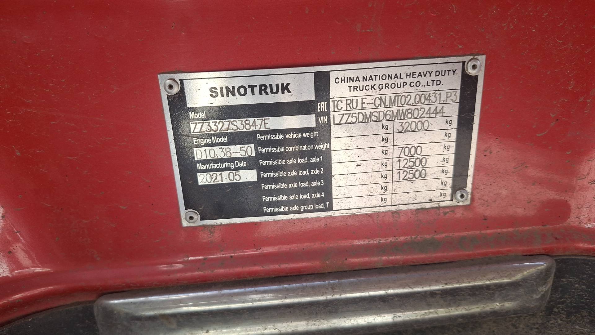 • Шины размер/тип: 315/80R22.5 (12.00 R20)