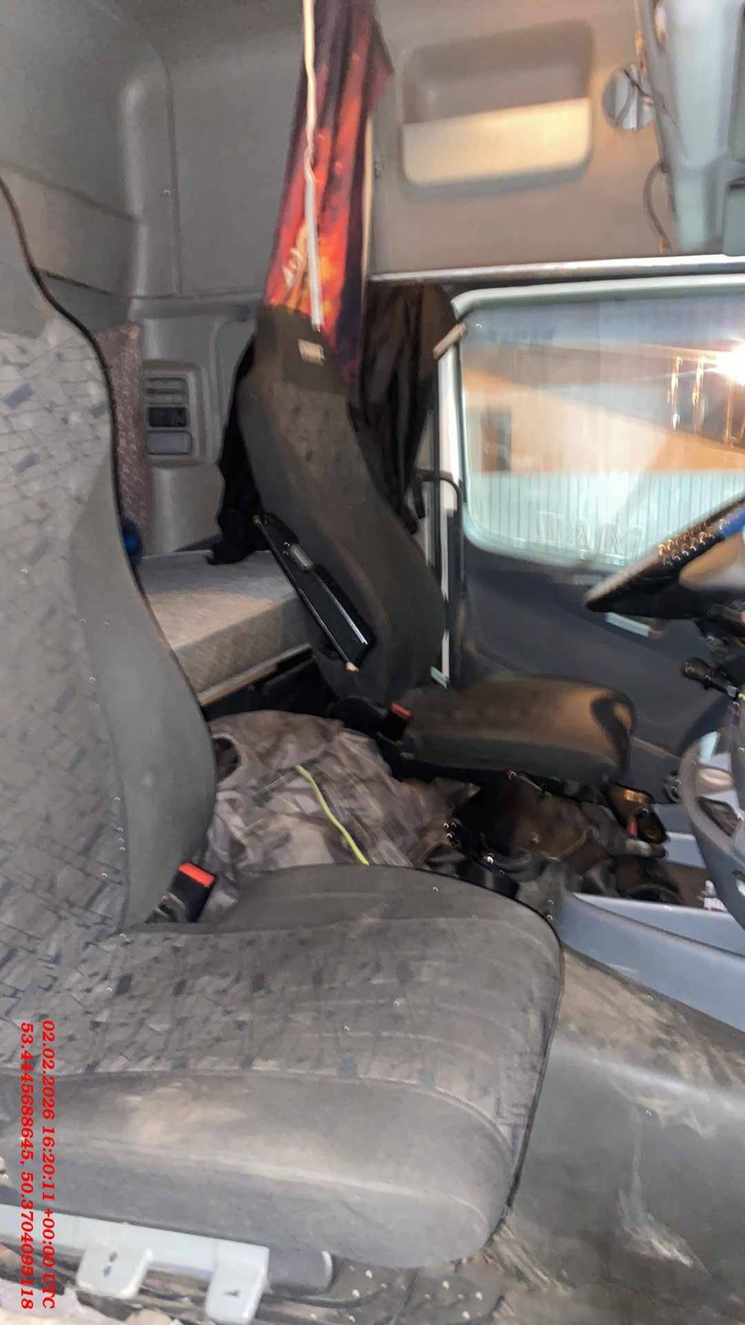 • Кабина: с одним спальным местом, высокая, пружинная подвеска, кондиционер, отопитель кабины;