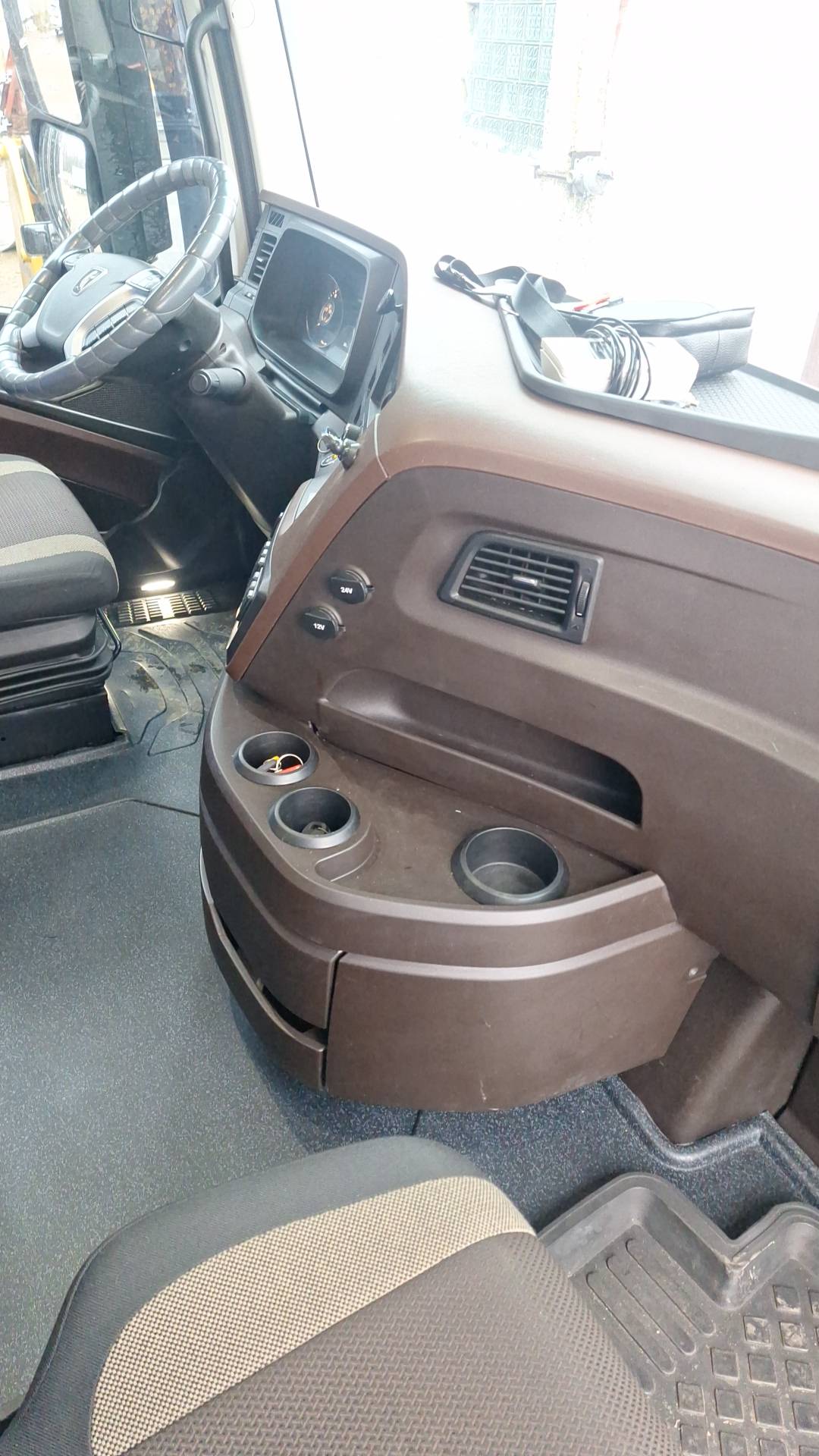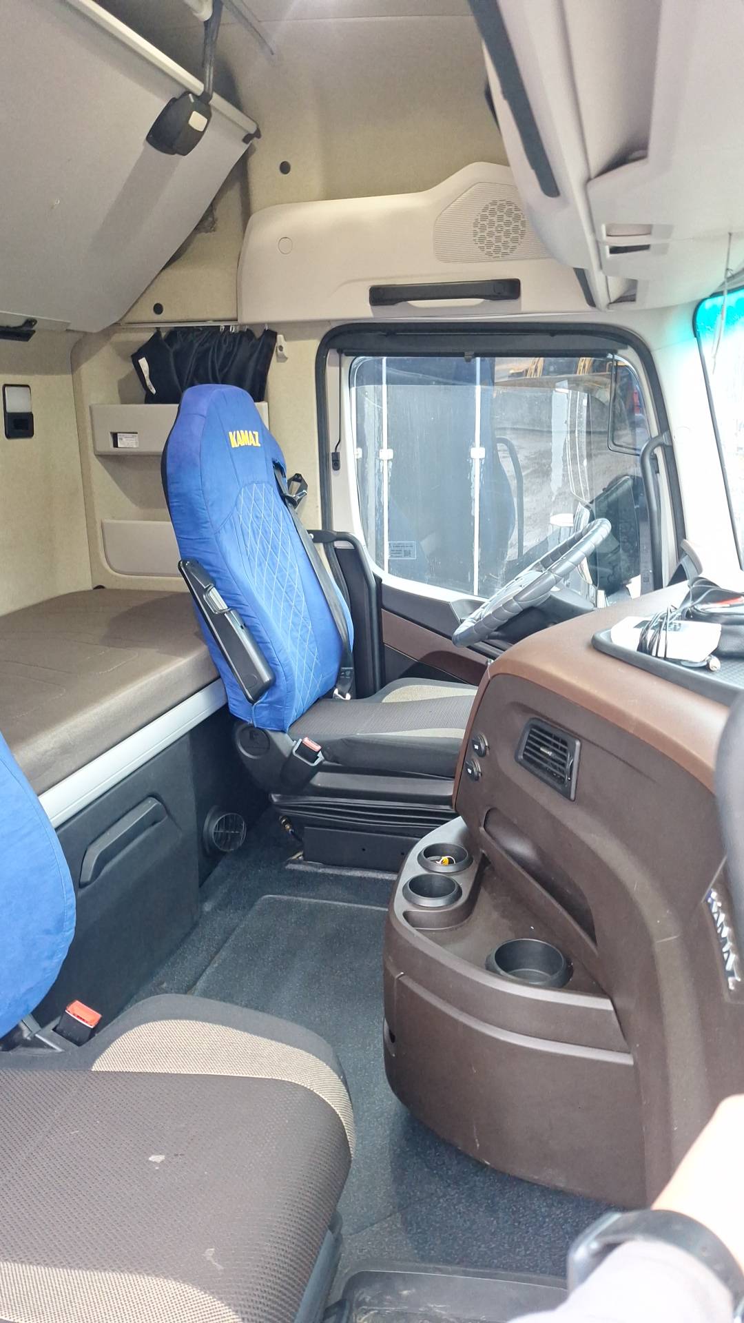 Особенности комплектации: дв. КАМАЗ Р6 910.15-450 (Евро-5), система нейтрализ. ОГ (AdBlue), АКПП F12JZ24DD , зад. мост Hande HDZ, пер. ось КАМАЗ, МКБ, ECAS, EBS, ABS, ESP, ASR, кабина высокая, широкая 2500мм, с ровным полом, пружинная подвеска каб., без аэродин. козырька, кондиционер, ПЖД, тахограф российского стандарта с блоком СКЗИ, электронасос МОК либо без него, ИТИС, мультимедиа БИС, УВЭОС, автономный отопитель кабины, без Холодильника
