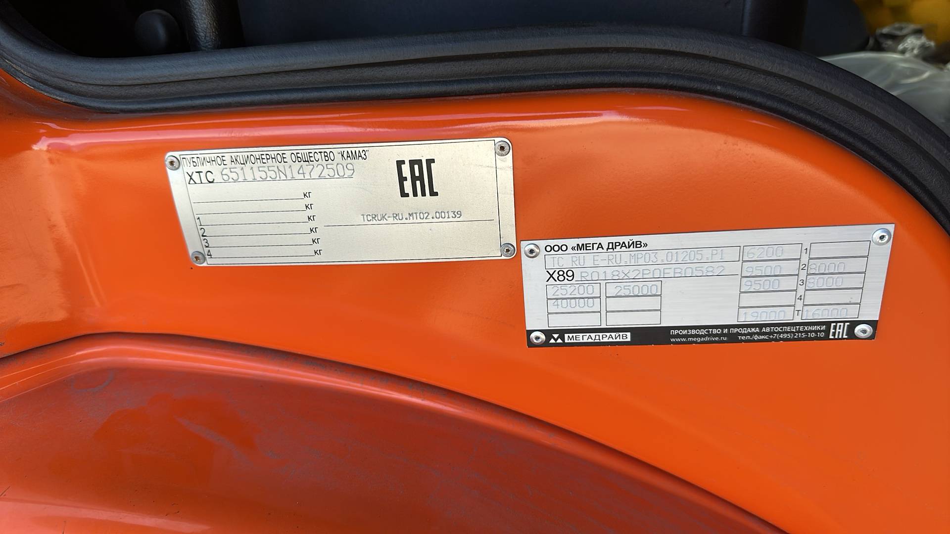 МКБ, МБС, дв. КАМАЗ 740.705-300 (Е-5), ТНВД АЗПИ, система нейтрализации: ОГ(AdBlue), Common Rail, ДЗК, зад. рабочий козырёк, тахограф российского стандарта с блоком СКЗИ, УВЭОС, боковая защита.
