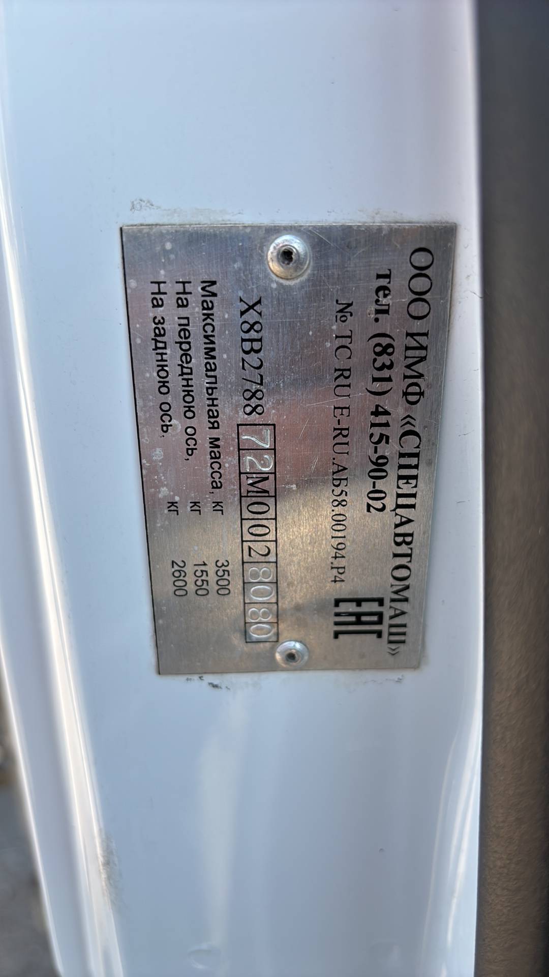 Технически допустимая максимальная масса: 3500 кг.