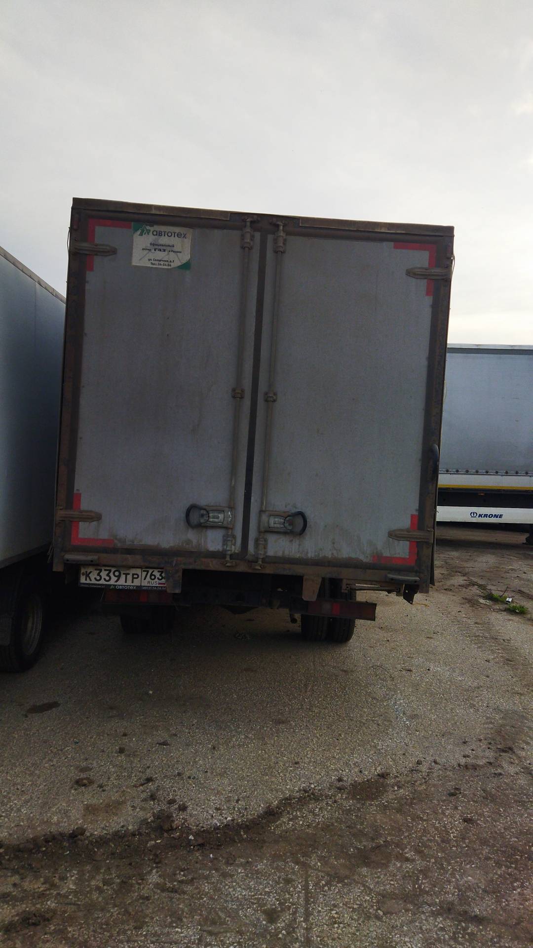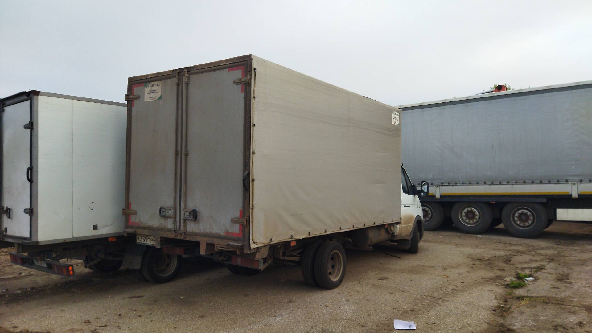 Габаритные размеры  4300х2200х2100. Основание цельный швеллер, пол и борта - транспортная фанера, тент до низа, ворота распашные.