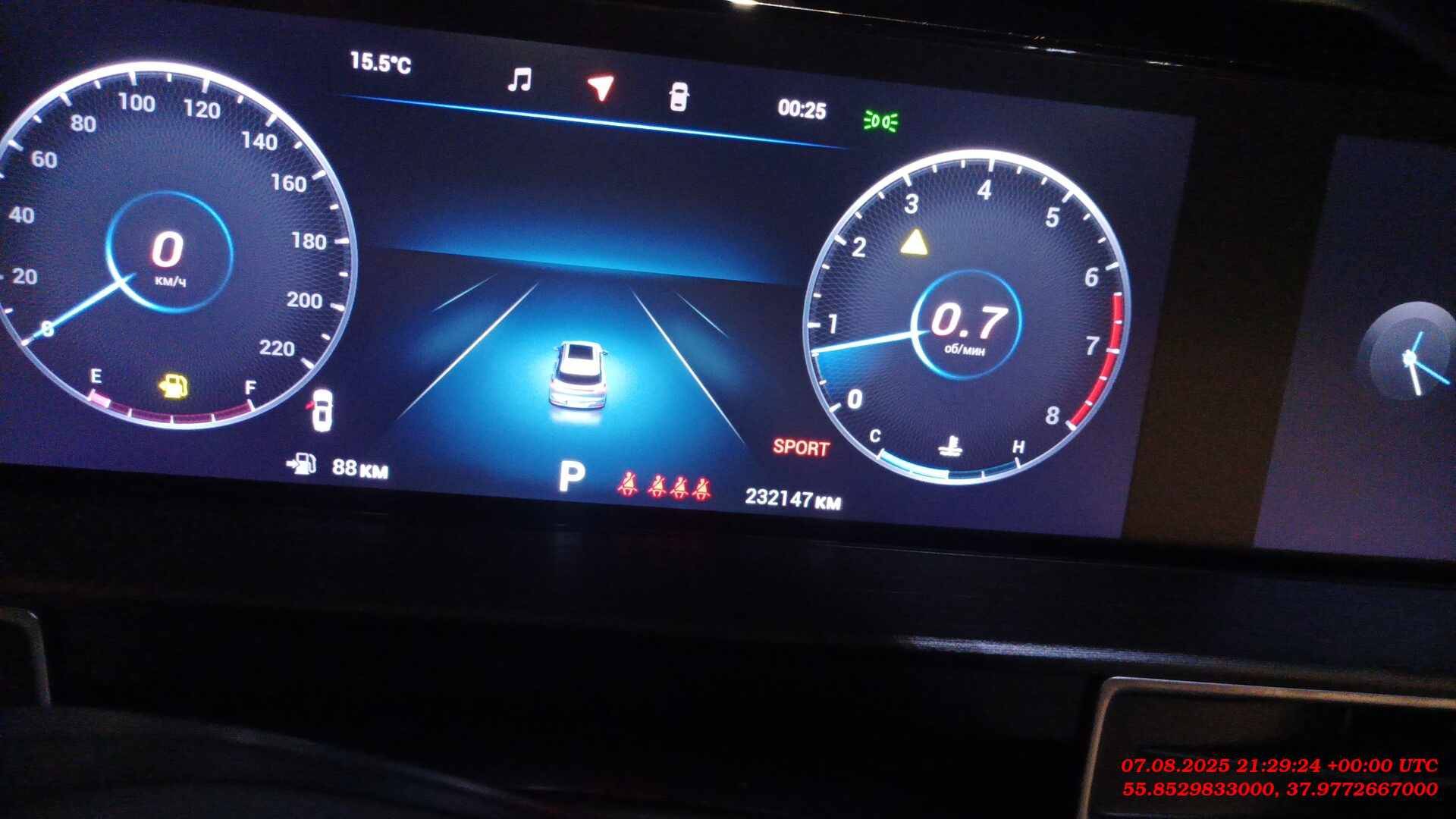 Цветной экран с бортовым компьютером в панели приборов 12.3".