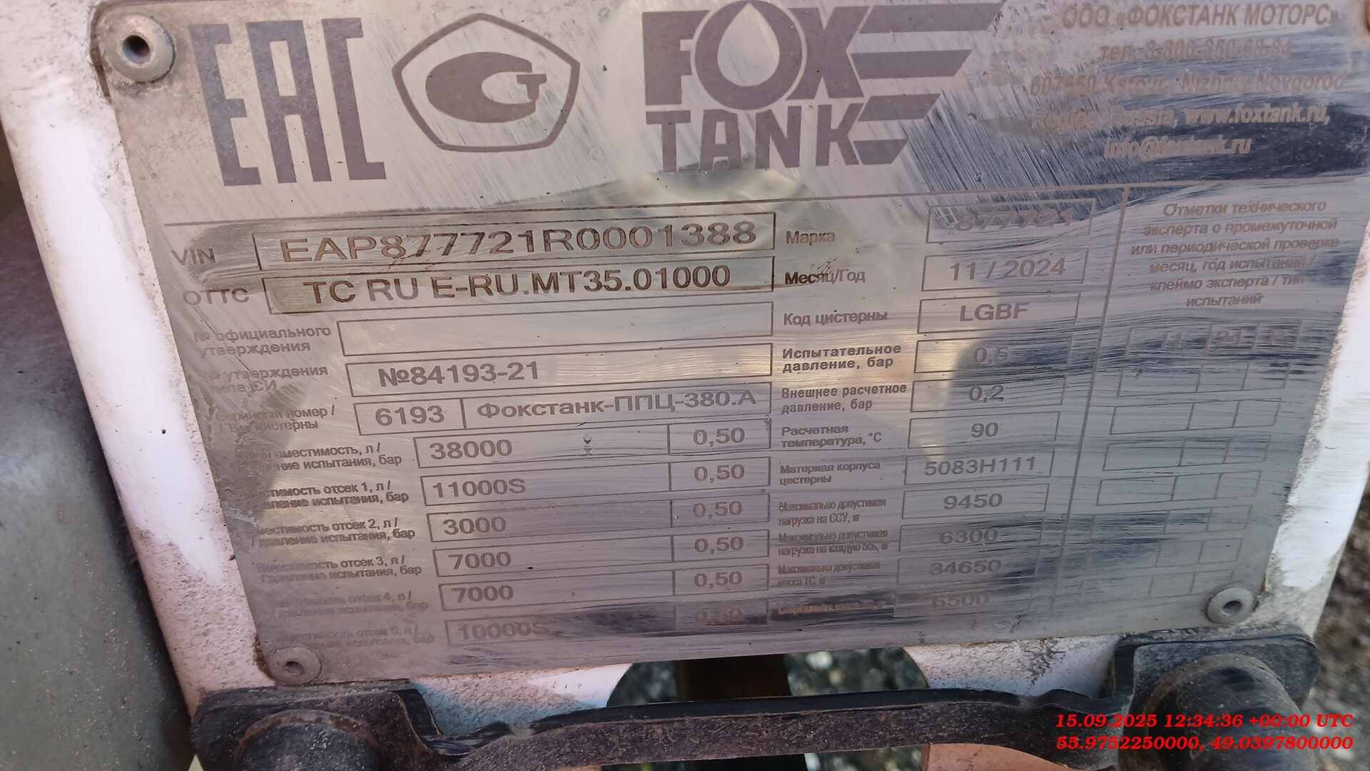 Объём цистерны: 38 м³