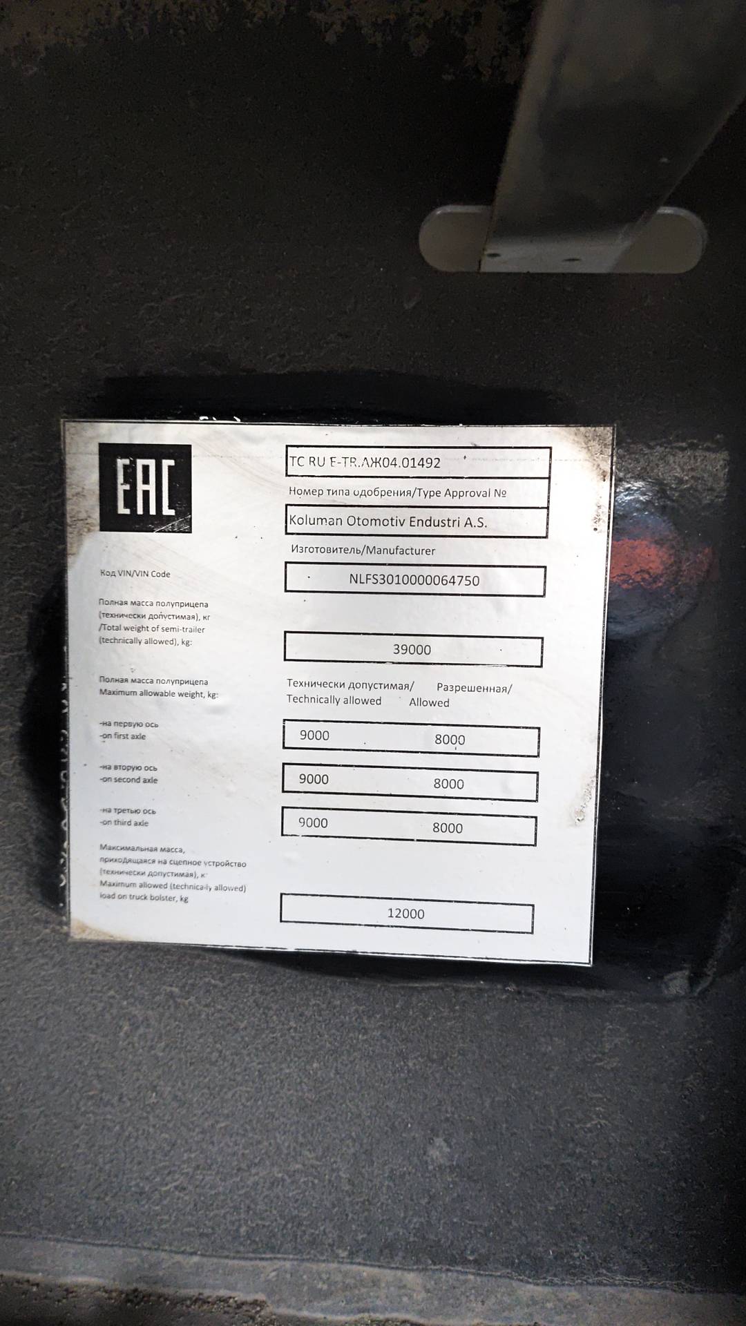 Допустимый вес 39 000 кг