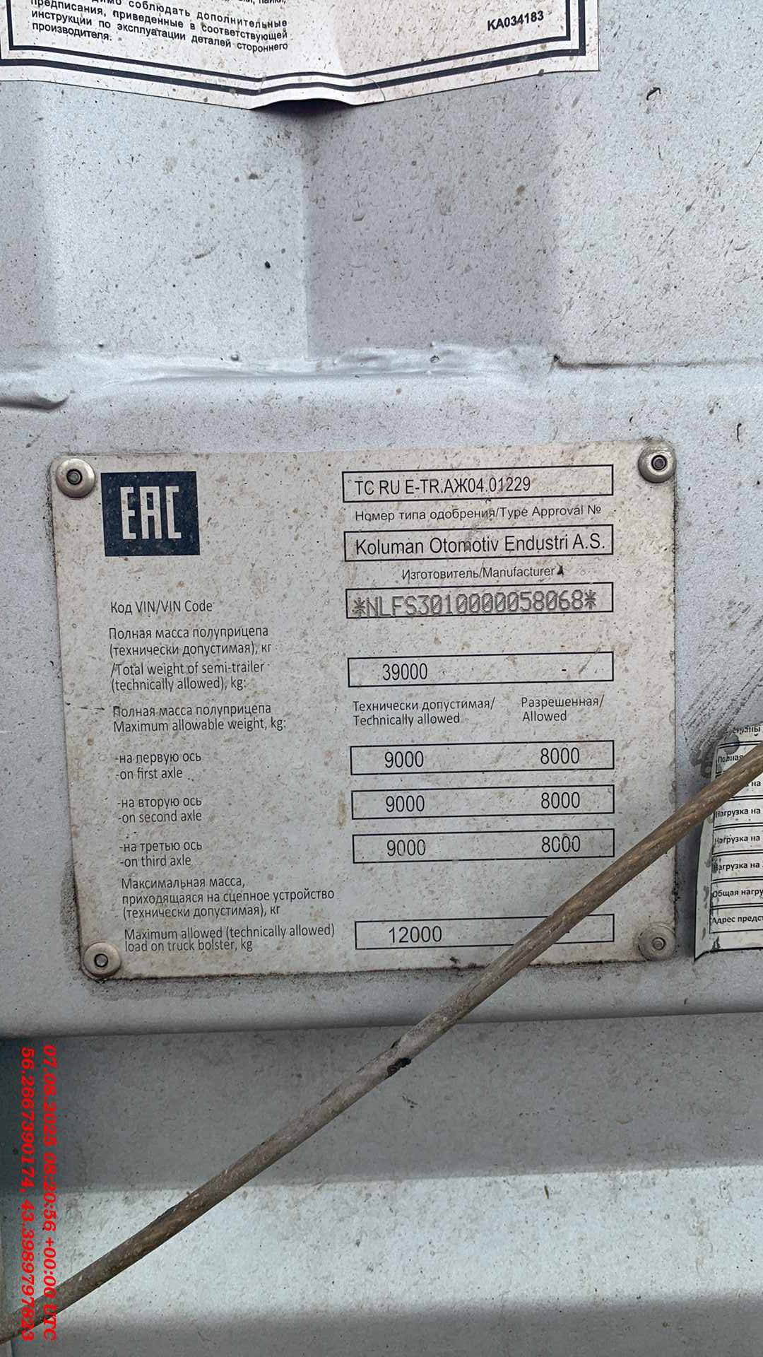 высота передней стенки около полный нагрузка на оси (доп/техн) 24.000/27.000