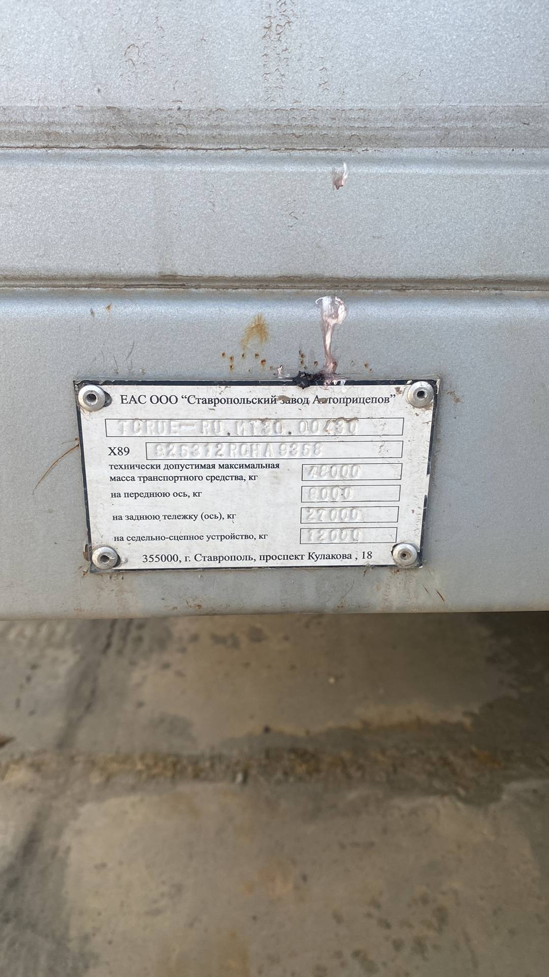 • Грузоподъёмность полуприцепа технически допустимая (кг): 48000