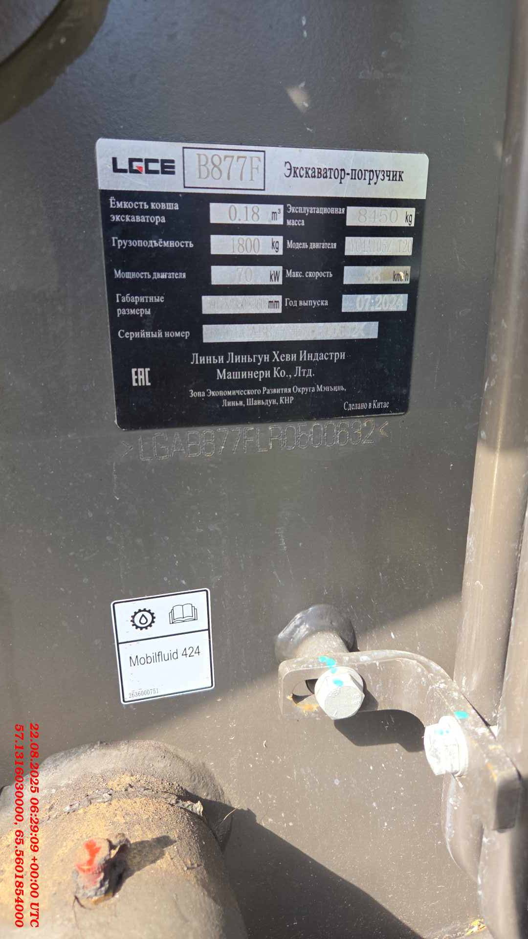Эксплуатационная масса машины, кг. 8450